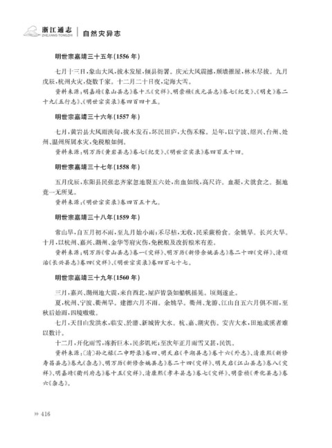 祥》、明嘉靖《衢州府志》卷十五《灾祥》、清康熙《孝丰县志》卷七《灾祥》、明崇祯《开化县志》卷