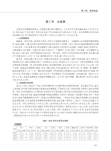 低水资源消耗、对企业征收水资源费等政策和措施,用水总量下降明显。2005 年,全县用水总量 4.73