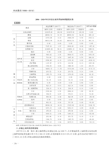 2006—2020 年长兴县土地利用结构调整情况表