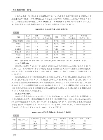 2012 年长兴县各乡镇户籍人口密度情况表