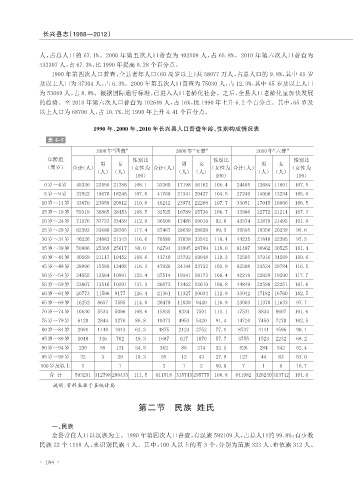 1990 年、2000 年、2010 年长兴县人口普查年龄、性别构成情况表