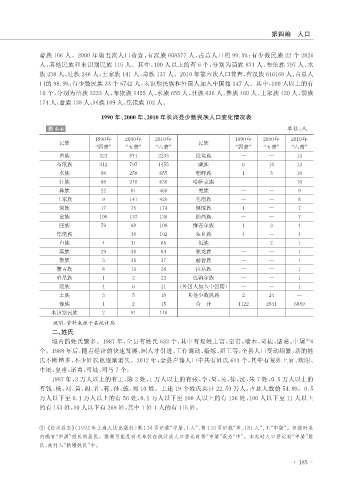 1990 年、2000 年、2010 年长兴县少数民族人口变化情况表