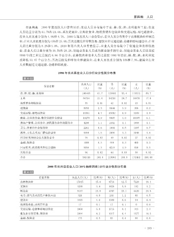 在业人员比重分别为 4.9%和 4.7%。2000 年第五次人口普查显示,在业人员分布集中于农林牧渔业和制造