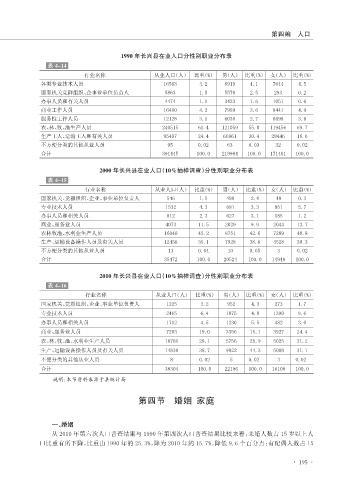 2000 年长兴县在业人口(10%抽样调查)分性别职业分布表