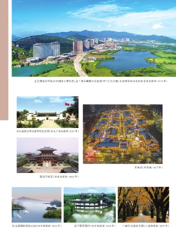 正在建设中的长兴太湖龙之梦乐园,由上海长峰集团总投资251亿元兴建(太湖图影旅游度假区管委会提供·2018年) 长兴县新四军苏浙军区纪念馆(县文广新局提供·2005年) 东鱼坊(邹黎摄·2017年) 陈武帝故宫(县旅委提供·2012年) 仙山湖国家湿地公园(泗安镇提供·2012年) 扬子鳄度假村(泗安镇提供·2005年) 八都岕古银杏长廓(小浦镇提供·2007年)