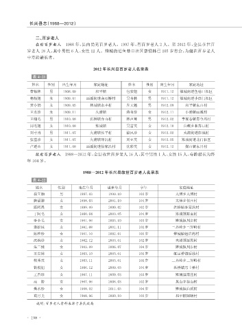 故世百岁老人 1988—2012 年,全县故世百岁老人 16 人,其中男性 1 人、女性 15 人,寿龄最长为终
