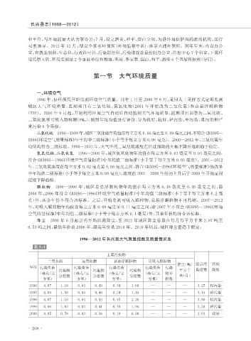 颗粒物 1996—2006 年,城区总悬浮颗粒物年均值在每立方米 0.18 毫克至 0.45 毫克之间,除