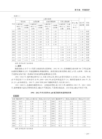 1991—2012 年,城区酸雨频率在 21.2%至 100%之间,降水 pH 值年均值在 4.20 至 6.76 之间。降水