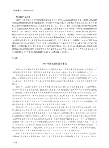1988 年,长兴县城所在地雉城镇饮用水水源地长兴港连续发生五次水体污染事故,严重影响 3 万