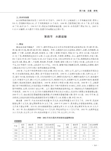 客运量 1988 年,全县内河客船客运量 38 万人次,客运周转量为 415 万人千米。1999 年,完成客
