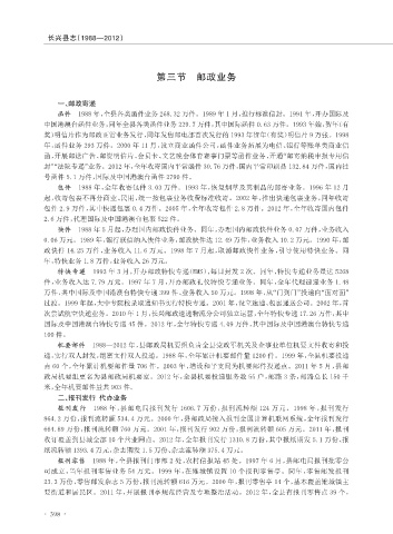 0.06 万元。1989 年,银行联信纳入快件业务,邮政快件达 12.49 万件,业务收入 10.2 万元。1990 年,邮