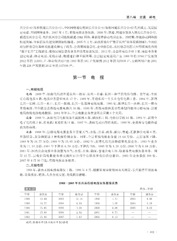 定电话、互联网等业务。2007 年 4 月,有线电报业务取消。2008 年,铁通、网通分别并入移动长兴分公司、