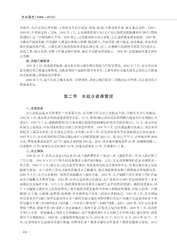 规定》。1993 年 3 月,县政府颁布《长兴县水利工程管理范围和保护范围的暂行规定》。11 月,县水利农