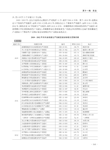 2010—2012 年,全县共验收认定粮食生产功能区 44 个,面积 7284.6 公顷。其中,2010 年,验收认
