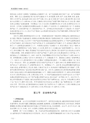作。至 2003 年年底,全县共有 7 个农产品获国家级绿色食品或有机食品称号,15 个农产品获国家级无