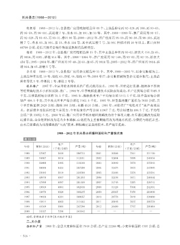 1988—2012 年长兴县水稻播种面积和产量情况表