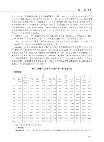 麦面积减少为 493 公顷,总产量 1813 吨。2006 年,随着农业机械化和大小麦免耕技术推广应用,农作