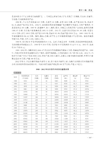 163.6 万株,杂竹 10913 万株,总产值 31075 吨,商品率 87.8%,商品产值 27876 万元。1988—2012 年,毛