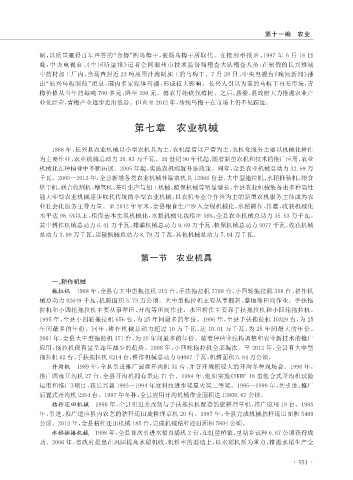 为主要作业,农业机械总动力 20.83 万千瓦。20 世纪 90 年代起,随着新型农机和技术的推广应用,农业