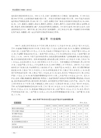 1988—2012 年若干年份长兴县工业总产值分行业结构情况表