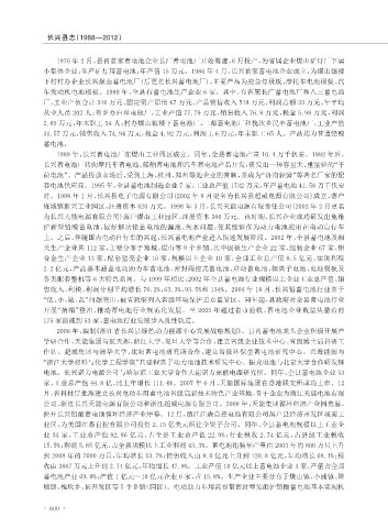 上。之后,伴随国内电动自行车的兴起,长兴蓄电池产业进入快速发展阶段。2002 年,全县蓄电池及相