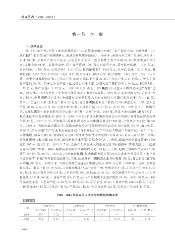 浦机械厂、长兴发电厂等规模略大,县属企业规模普遍较小。1988 年,全县有年工业产值 100 万元以上