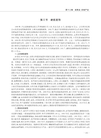 业陆续进驻长兴。2009 年,全县共有建筑装饰企业 16 家,其中外地在长兴装饰企业 11 家。2012 年,全
