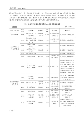 1992—2012 年长兴县建筑工程获省以上优质工程奖情况表