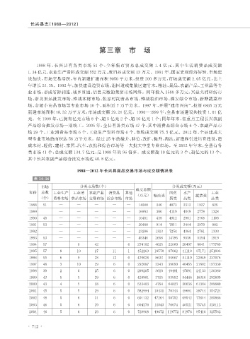 1988—2012 年长兴县商品交易市场与成交额情况表