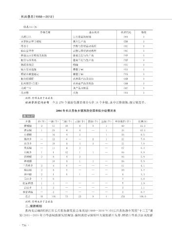 2004 年长兴县各乡镇旅游资源单体分级情况表