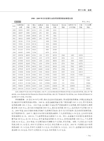 款两类,1994 年起流动资金贷款和农业贷款合称短期贷款、固定资产贷款改称中长期贷款,2010 年起短期贷款统计分
