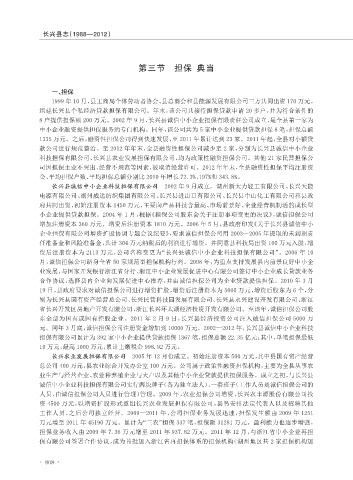 8 户提供担保额 200 万元。2002 年 9 月,长兴县诚信中小企业担保有限责任公司成立,是全县第一家为
