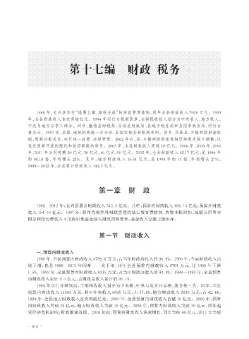 1988—2012 年,长兴县累计财政收入 342.3 亿元。其中,预算内财政收入 188.14 亿元,预算外财政