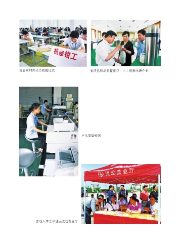 首届农村劳动力技能比武 省质监局局长瞿素芬(中)视察永康企业 产品质量检测 劳动人事工作便民流动营业厅