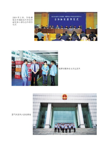2004 年 2 月, 市 检 察 院与中国政法大学法学 研究中心举行合作签字 仪式 检察官服务企业关注民生 意气风发的人民检察官