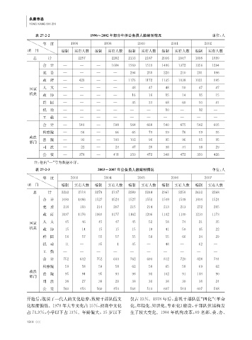 表2722 1996~2002年部分年份公务员人数编制情况 单位: 人
