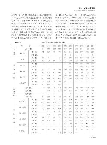 占27.5%。年龄结构35岁以下占43.5%。1987年 853人占47.5%, 36~40岁267人占14.8%, 41~45