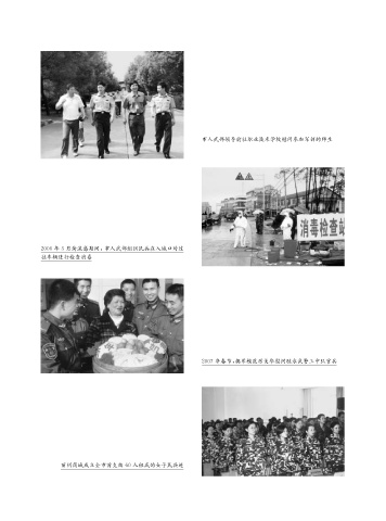市人武部领导前往职业技术学校慰问参加军训的师生 2006年3月禽流感期间,市人武部组织民兵在入城口对过 往车辆进行检查消毒 2007年春节,拥军模范厉美华慰问驻永武警三中队官兵 丽州商城成立全市首支由60人组成的女子民兵连