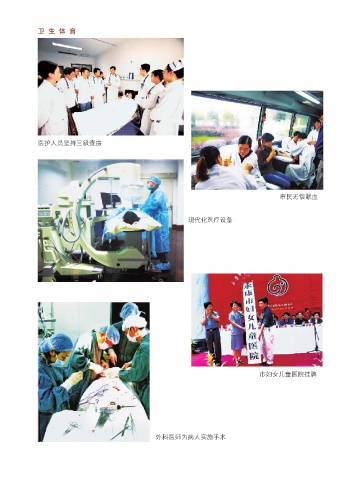 卫 生 体 育 医护人员坚持三级查房 市民无偿献血 现代化医疗设备 市妇女儿童医院挂牌 外科医师为病人实施手术