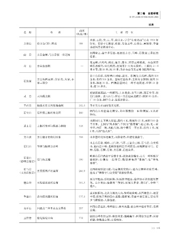 名 称 坐 落 (海拔/米) 主 要 特 征
