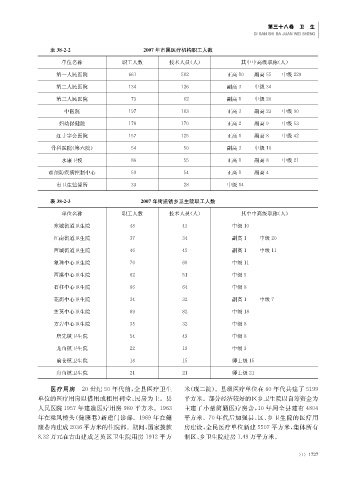 表3822 2007年市属医疗机构职工人数