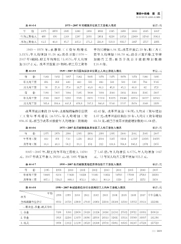 表4445 1949~2007年间国有经济单位职工人均工资收入情况 单位: 元