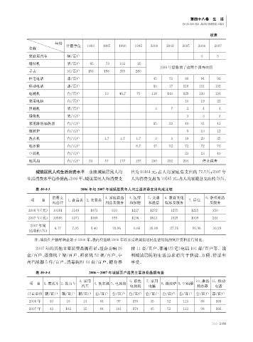 套/百户、摄像机7架/百户、照相机52架/百户、中 明城镇居民的生活追求趋向于快捷、方便、舒适和