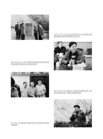 2012年2月21日,省志办主任潘捷军(左三)在永康方岩考 察民国浙江省史料征集委员会办公旧址 2008年12月23日,时任市委副书记的徐华水在出席金华 市在永康召开的地方志工作会议并讲话 2013年9月24日,程朱昌父子向永康市档案局局长、方志 办主任周跃忠(右一)赠送《永康程氏遗书》 2013年1月,永康市志主编童文贤作乡村谱志文化研究 主题讲话
