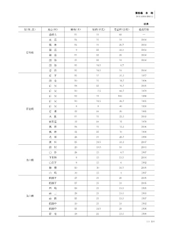 镇(街、区) 地点(村) 杨程(米) 装机(千瓦) 受益田(公顷) 建成年份
