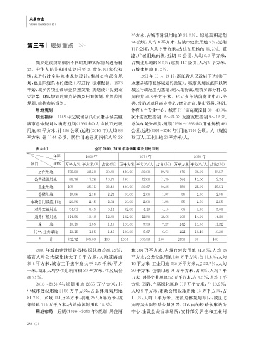 第三节 规划重点 24公顷,人均4平方米,占城市建设用地5%;远期