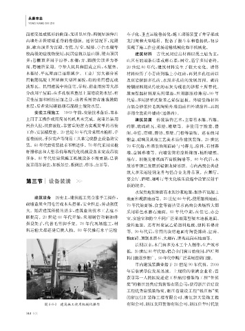 建筑设备 历史上,建筑施工完全靠手工操作, 地面和现磨地面等。20世纪60年代,使用塑料地面。