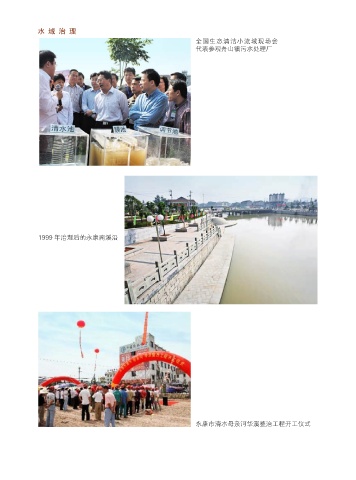 水 域 治 理 全国生态清洁小流域现场会 代表参观舟山镇污水处理厂 1999 年治理后的永康南溪沿 永康市清水母亲河华溪整治工程开工仪式