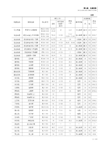 线路名称 桥梁名称 中心桩号 跨径总长 桥宽 桥型结构 建成