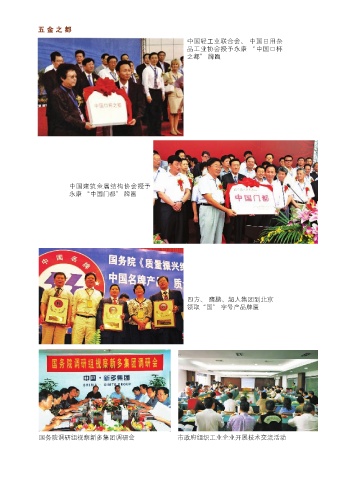 五 金 之 都 中国轻工业联合会、 中国日用杂 品工业协会授予永康 “中国口杯 之都” 牌匾 中国建筑金属结构协会授予 永康 “中国门都” 牌匾 四方、 鹰鹏、超人集团到北京 领取“国” 字号产品牌匾 国务院调研组视察新多集团调研会 市政府组织工业企业开展技术交流活动